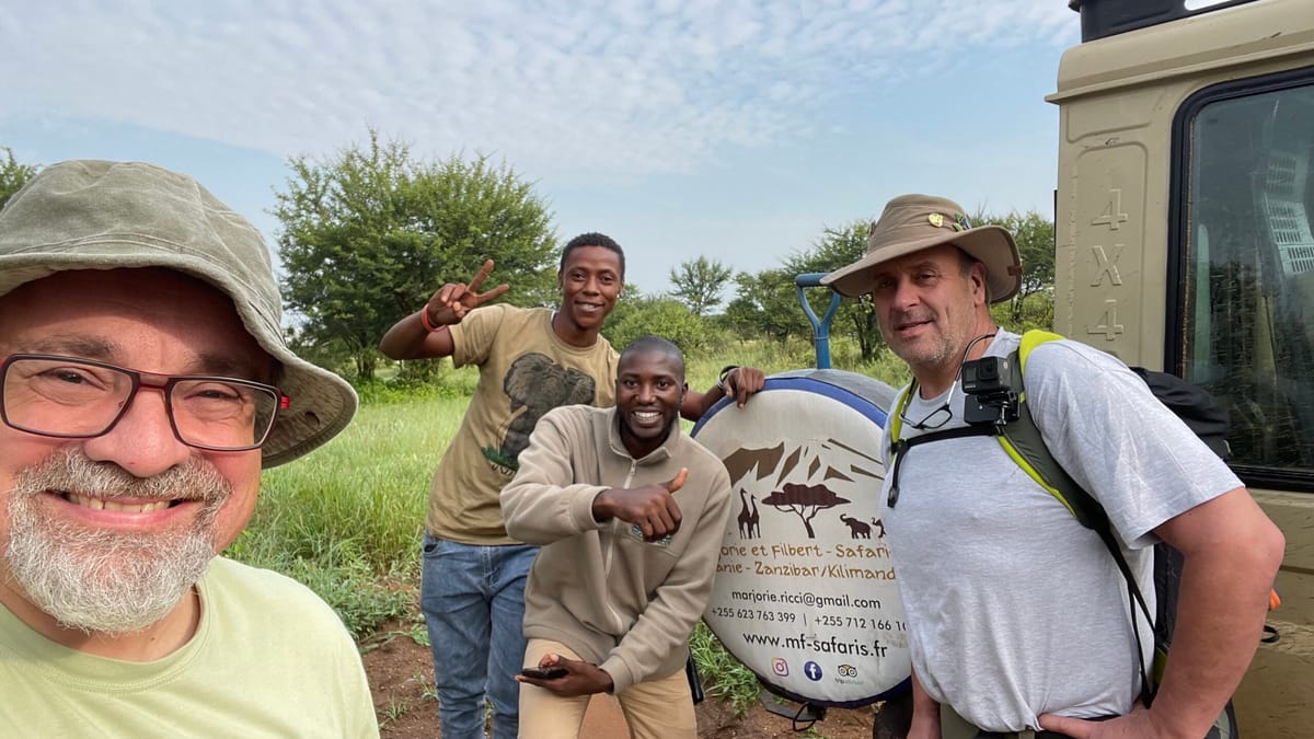 On part pour Moshi. Trois petites heures de route. Et demain le kili On est excité du départ On vient de faire connaissance avec Nelson notre super guide de l’équipe de Marjorie et Filbert - Safaris en Tanzanie - Zanzibar / Kilimandjaro Trop super cool et bien excité. Dee and