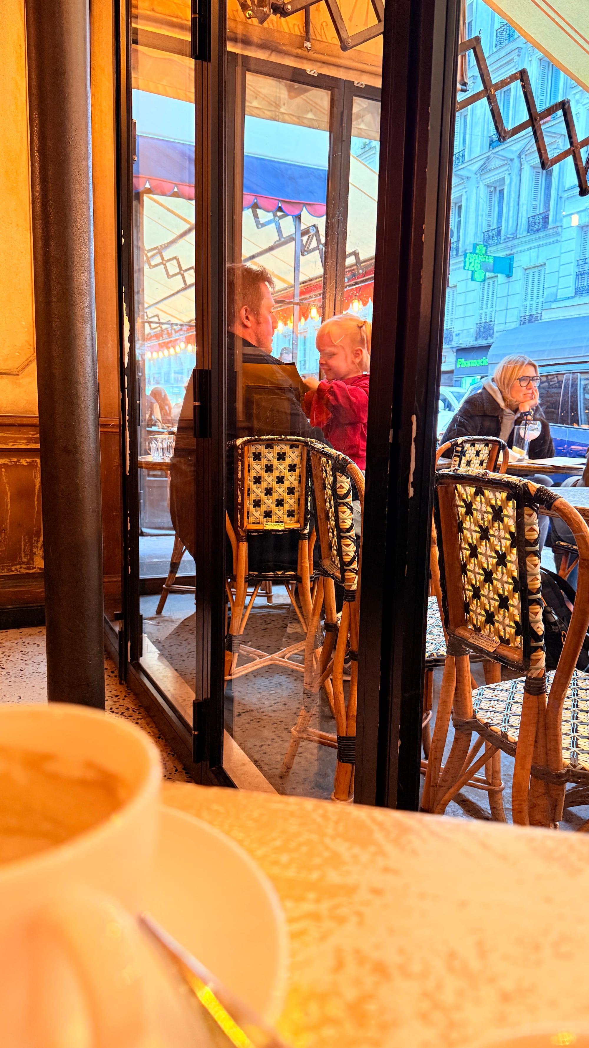 C’est la petite gamine qui se réfugie dans les bras de son papa dans un café de Montmartre